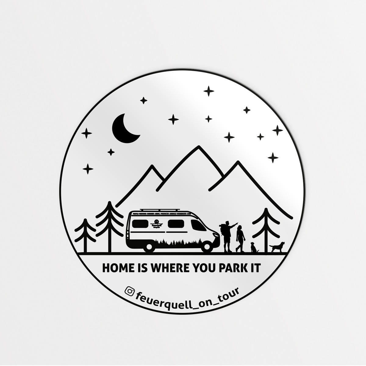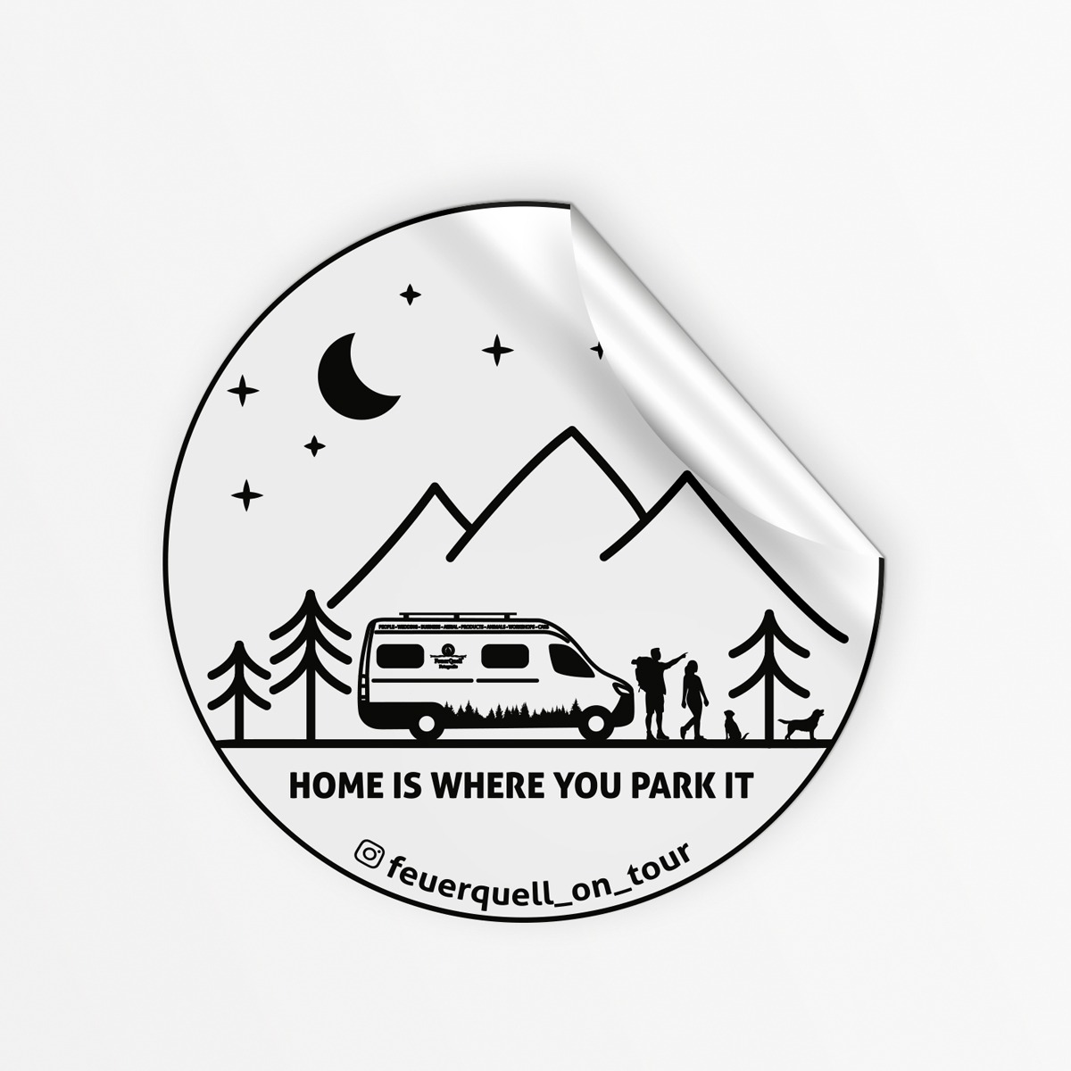 Drei Sticker „Home is where you park it.“ Aufkleber rund 9,5 cm x 9,5 cm Witterungsbeständig
